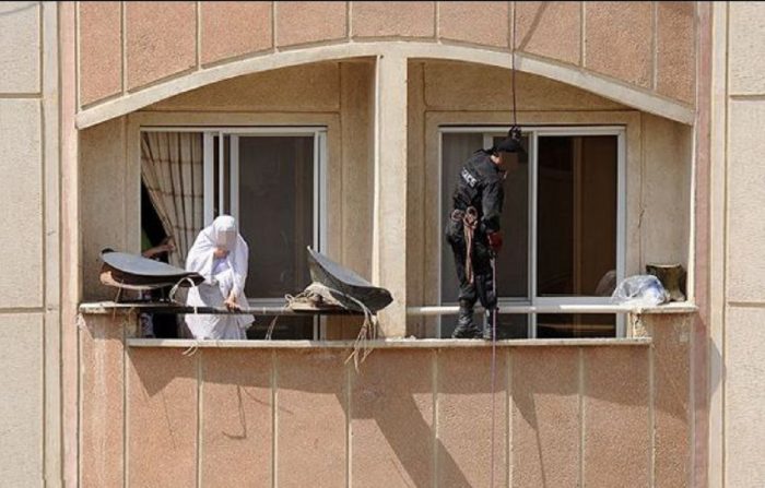 به عکس زیر نگاه کنید. حدود سال ۱۳۹۰ است. طرح ضربتی جمعآوری دیشهای ماهواره در حال اجراست. تکاوری با راپل از پشتِ بام یک ساختمان مسکونی خودش را به بالکن آپارتمانی رسانده است و در حال معدوم کردن دیش ماهواره و سپس پرتاب آن به حیاط ساختمان است. در آن روزها، فرمانده محترم نیروی انتظامی مدام با رسانههای جمعی مصاحبه میکند و پافشاری؛ که پلیس به هیچوجه از این اقدام عقبنشینی نخواهد کرد.