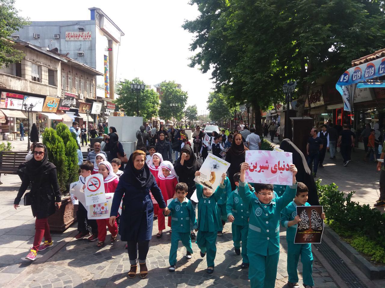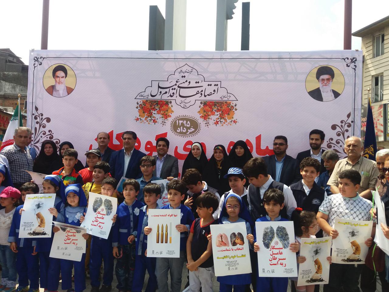 در این مراسم ابتدا کودکانی که از مهدکودک های شهر رشت در این همایش پیاده روی حضور داشتند با در دست داشتن پلاکاردها و شعارهای ضد دخانیات به صورت نمادین به پیاده روی پرداختند. این اقدام با استقبال خوب شهروندان همراه شد. اهدای گل از دیگر بخش های این برنامه بود.